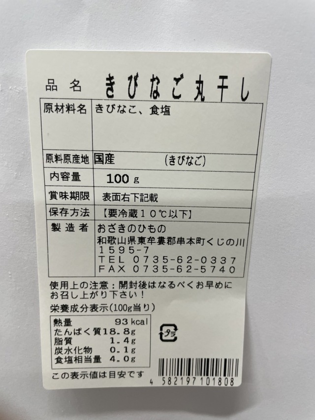 キビナゴの丸干し 100g
